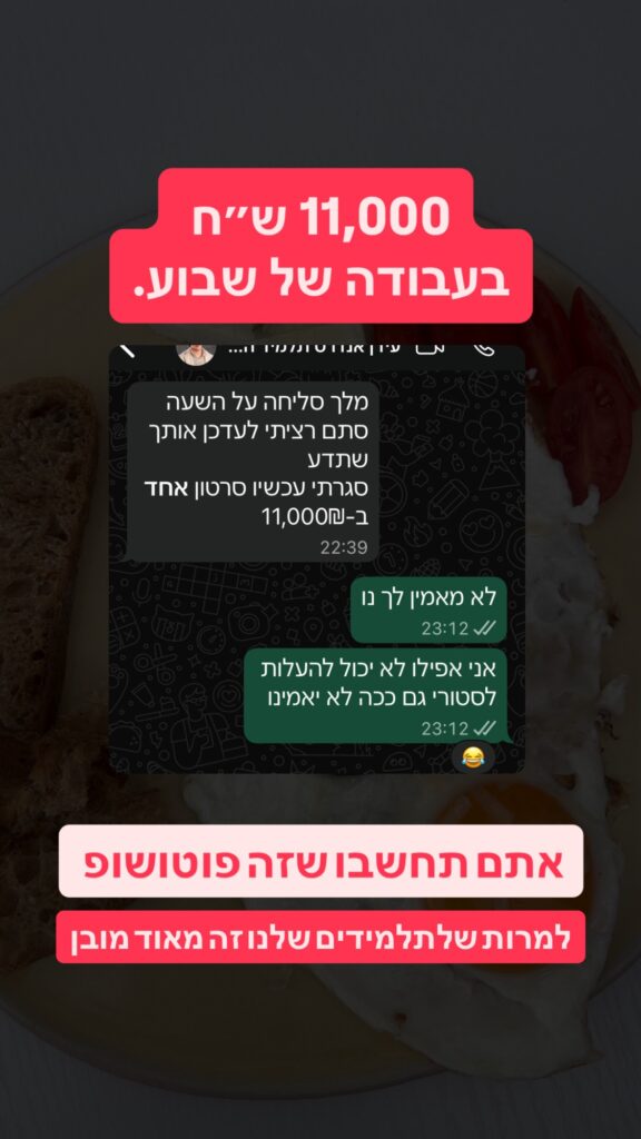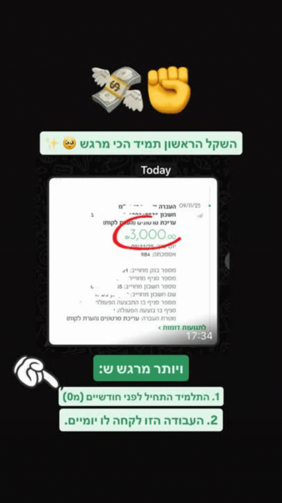 ״4 חודשים אחרי שהתחלתי ללמוד גייסתי לקוח גדול מאוד